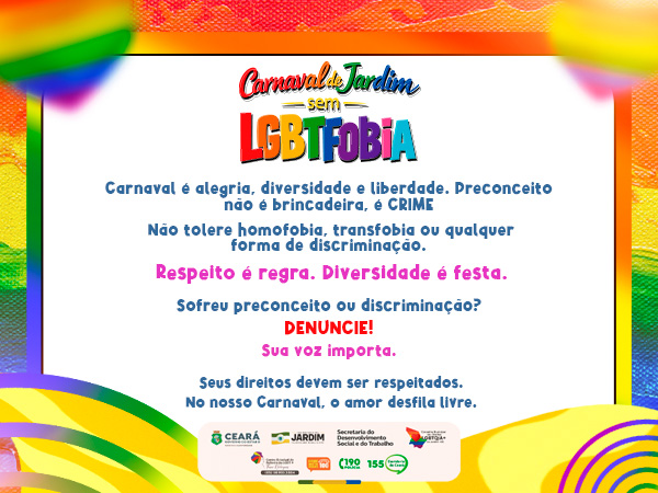 Continue lendo.CARNAVAL DE JARDIM REFORÇA CAMPANHA CONTRA A LGBTFOBIA