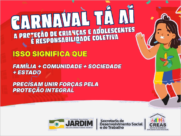 CARNAVAL EM JARDIM TEM CAMPANHA PARA REFORÇAR A PROTEÇÃO DE CRIANÇAS E ADOLESCENTES.